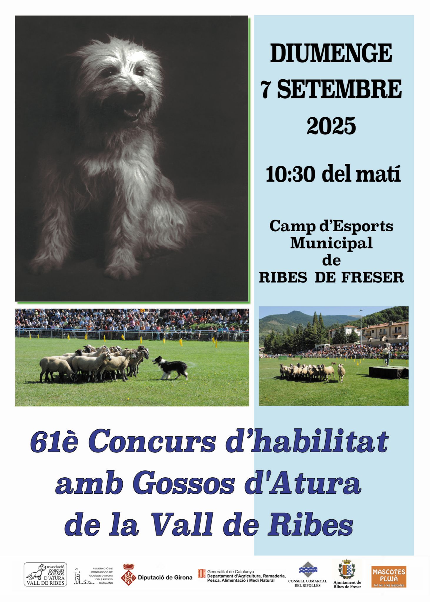 El proper diumenge, 7 de setembre, no us podeu perdre el 61è concurs d’habilitat amb Gossos d’Atura de la Vall de Ribes!